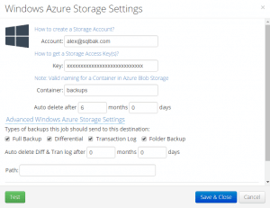 SQL Server backup to Azure with SqlBak (advanced settings)