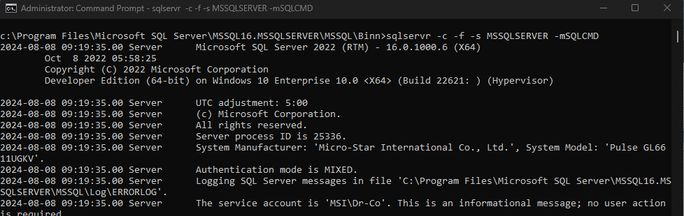 sqlservr -c -f -s MSSQLSERVER -mSQLCMD